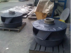 對于脫硫漿液泵,磨蝕最嚴重的部位是吸入側護板和葉輪,護板磨蝕的外觀是密集的蜂窩狀半圓凹坑。閉式葉輪汽蝕、磨損的部位主要在出漿處以及葉輪吸入側邊緣和輪轂。